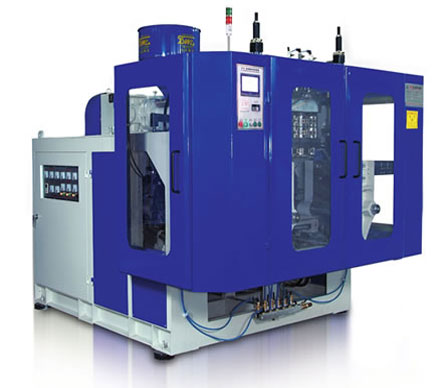 Máquinas de soplado con cabezal simple y cabezal doble, con una estación o doble estación, diseñada para fabricar envases desde 10ml a 200L. Sopladoras equipadas con banda transportadora automática y detector de fugas para control de calidad.